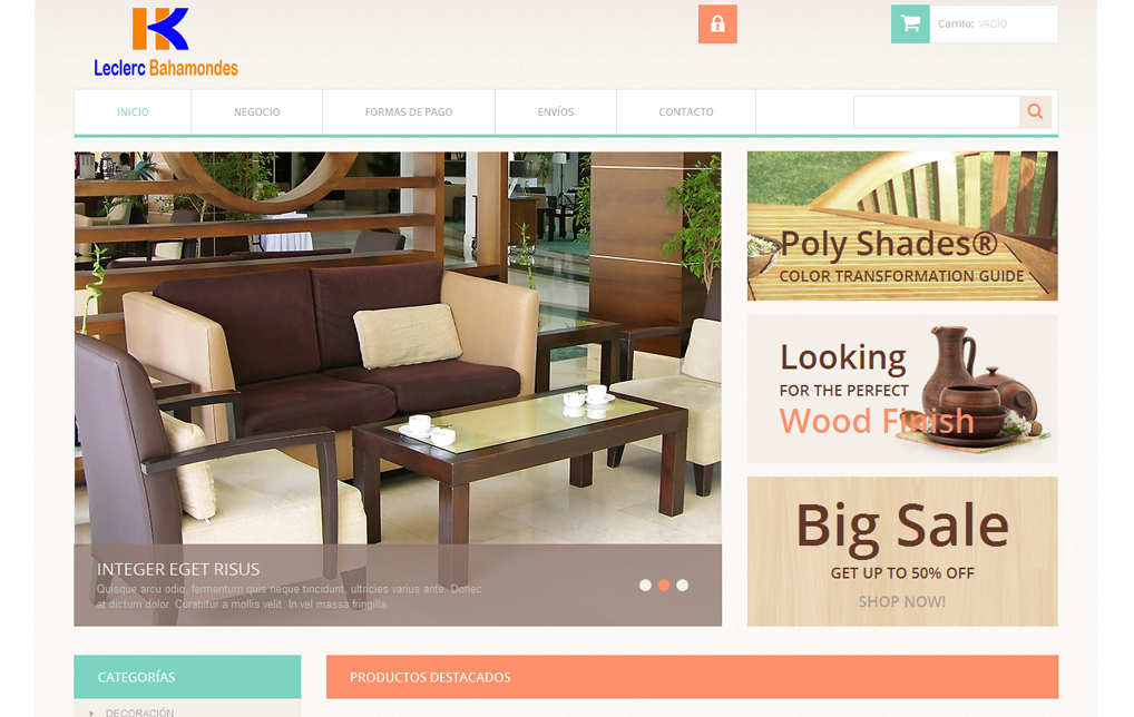 Sitio web para ecommerce, con un diseño básico pero funcional y que entrega todas las bondades del sistema ecommerce utilizado.